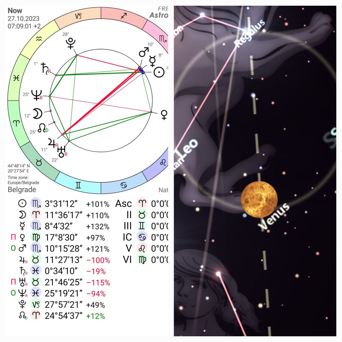Petak,27.10.2023,Venerin dan je svanuo u 07:09:01 sa Suncem na 3°Škorpiona.Veoma posebno mesto.Danas u regionu gde ja živim slavi se hriščanski praznik Sv.Petka.Ime Svete Paraskeve ili Petke dolazi od grčke reči: paraskeva što znači petak, otuda Petka. Rođena je u 10. veku u Epivatu, kod grada Kalikratije u Maloj Aziji.