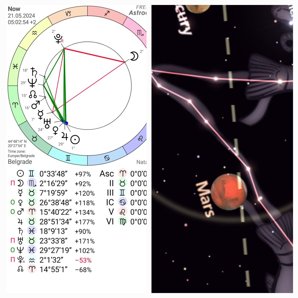 Utorak 21.5.2024 Marsov dan je svanuo u 05:02:54 sa Suncem na 0°Blizanaca.