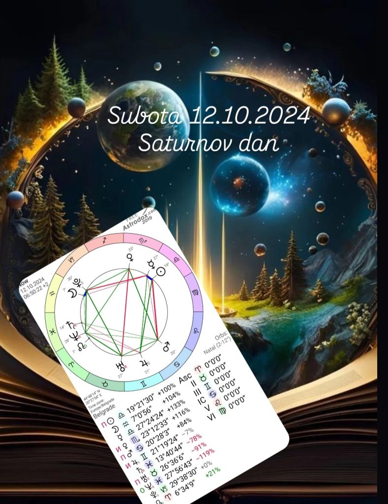 Subota 12.10.2024 Saturnov dan je svanuo u 06:50:22 sa Suncem 19°Vage.