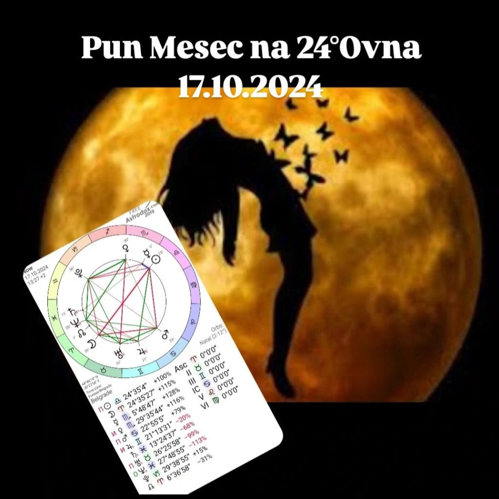 Pun Mesec na 24° Ovna donosi intenzivne energije jer je Ovnovska priroda povezana sa akcijom, inicijativom, impulsivnošću i borbenim duhom. Ova kulminacija naglašava teme vezane za lične inicijative, identitet, hrabrost i direktno suočavanje sa izazovima. Pošto je pun Mesec uvek u opoziciji sa Suncem, ovde imamo opoziciju Meseca u Ovnu i Sunca u Vagi, što može izazvati sukobe između individualnih potreba (Mesec u Ovnu) i kompromisa u odnosima (Sunce u Vagi).