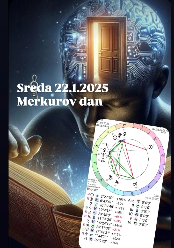 Sreda 22.1.2025 Merkurov dan je svanuo u 07:06:58 sa Suncem na 2°Vodolije.