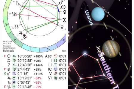 Saturn i Pluton grade sekstil – aspekt koji omogućava duboku, ali postepenu transformaciju. Međutim, oboje prave inkonjunkciju (150°) sa Mesecom, stvarajući unutrašnju napetost koja traži stalno prilagođavanje, finu unutrašnju korekciju i budnost.