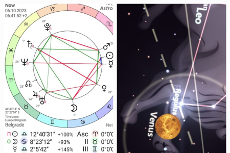 Dan je svanuo u 06:22:25, sa Suncem na 9°28′ znaka Ovna. U ovom vatrenom prostoru nalaze se još i Neptun i Saturn, dok Venera boravi na poslednjim stepenima Ovna – sve do 18h, kada prelazi u znak Bika, u svoje sedište, donoseći smirenje i potrebu za uživanjem, dodirom i stabilnošću.