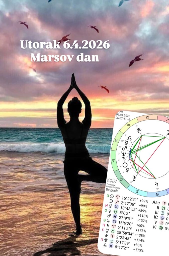 Utorak, 7. april 2026. – Marsov dan se rađa u 06:07:43, sa Suncem na 17°07’ znaka Ovna, u snažnom i simbolički veoma bogatom društvu Saturna, Neptuna i Kirona. Ovo nije običan dan – ovo je prostor između dva sveta: onog koji se završava i onog koji tek treba da se rodi.